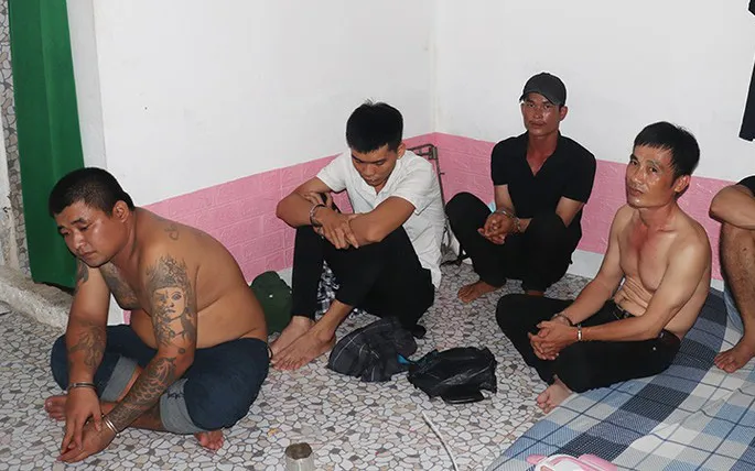 Nhóm đối tượng bị bắt tại phòng trọ số 7. Ảnh: NDO