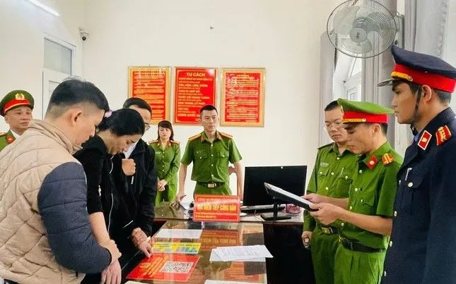 Công an đọc lệnh bắt tạm giam đối với Nguyễn Thị Quế Chi. Ảnh CAQN