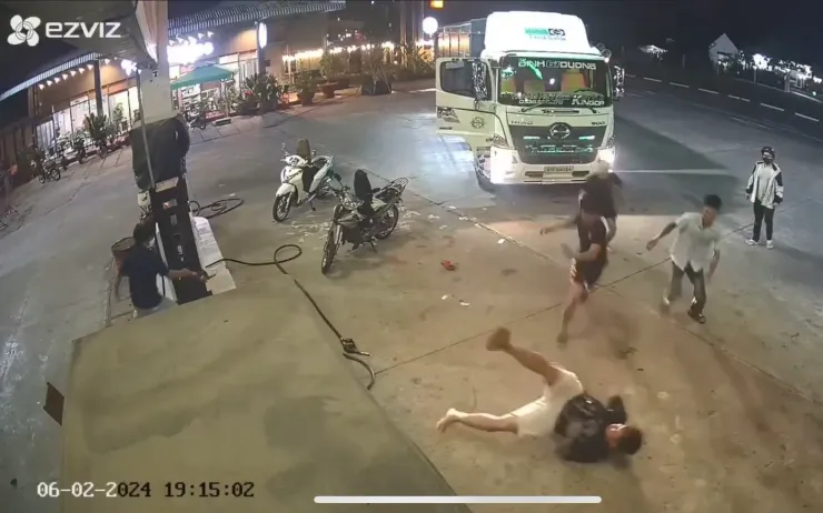 Sau đó, khoảng 19 giờ 15 phút ngày 2/6, một xe tải biển số 61E - 040.04 đi đến dừng trước cây xăng, lúc này có khoảng 6 thanh niên từ trên xe cầm hung khí là tuýp sắt và dao bước xuống tấn công nhân viên cây xăng khiến 2 người bị thương tích phải đi bệnh viện cấp cứu.