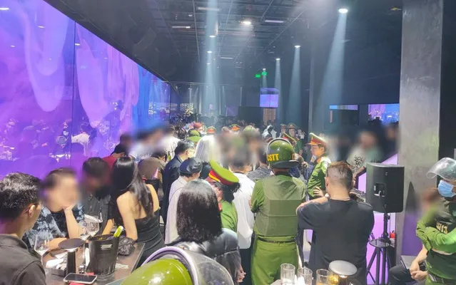 Các lực lượng Phòng Cảnh sát Quản lý hành chính về trật tự xã hội kiểm tra bất ngờ tại quán bar EASY D vào lúc rạng sáng 15/1. Ảnh: Công an TP Đà Nẵng