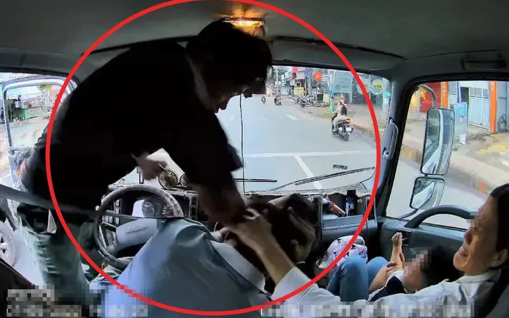 Clip ghi lại cảnh tài xế xe tải bị Bùi Văn Hoàng Anh đánh túi bụi. Ảnh: PLO