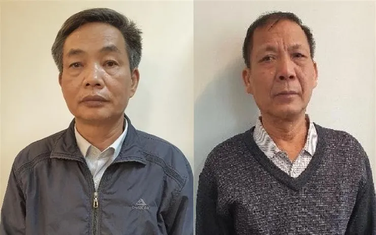 Bị can Đặng Ngọc Cầm (bên trái); Bị can Nguyễn Quốc Khánh (bên phải).