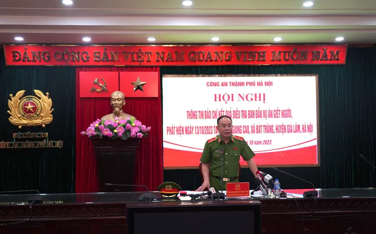 Tại cuộc họp báo, Công an TP Hà Nội đã thông tin: Khoảng 12h30’ ngày 13/10/2023, Tổng đài 113 - Công an Thành phố tiếp nhận tin báo từ quần chúng nhân dân về việc phát hiện một số bộ phận thi thể người tại mép bờ sông Hồng thuộc khu vực miếu Bản, địa phận thôn 2 Giang Cao, xã Bát Tràng, huyện Gia Lâm, Hà Nội.