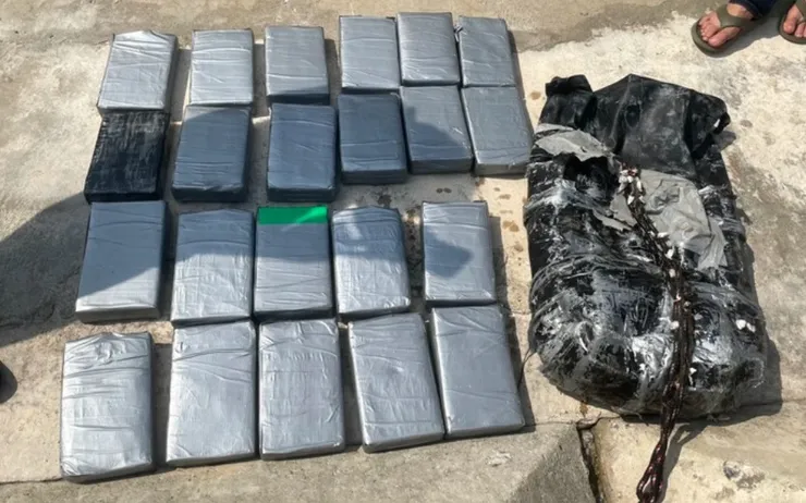 Công an huyện đã tiến hành tìm số ma túy còn lại dọc bãi biển Lý Sơn và phát hiện 1 bao da màu đen, bên trong có 22 gói nghi là ma túy và được gói cẩn thận. Tiến hành cân 22 gói thu tại hiện trường có khối lượng khoảng 26 kg. Công an huyện đã lập biên bản, niêm phong tang vật.