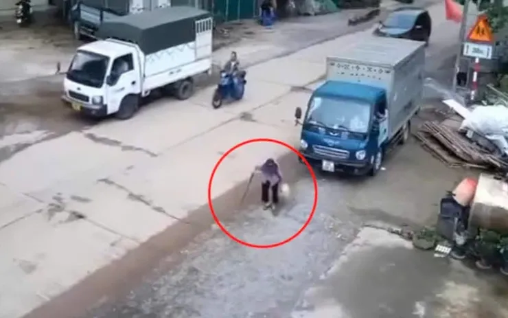 Cụ bà 88 tuổi lúc sắp bị tai nạn.