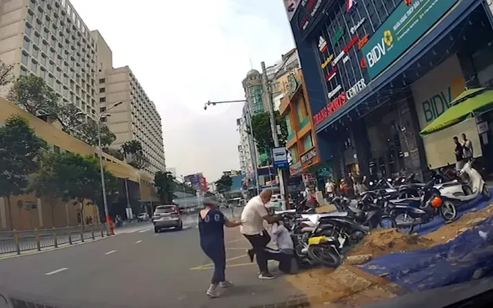 Ông Hà xông đến dùng mũ bảo hiểm đánh vào vùng đầu, vào mặt của M., nam shipper có chống trả nhưng do mất thăng bằng nên té ngã xuống đường.