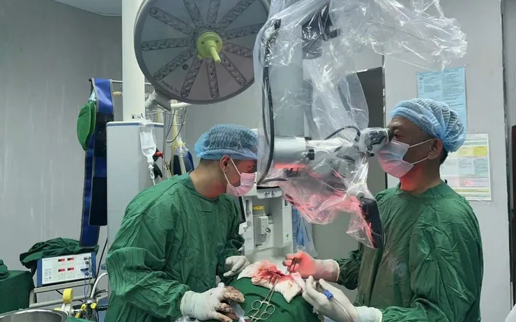 Ekip Khoa Ngoại thần kinh do BSCKII. Huỳnh Như Đồng - Trưởng Khoa Ngoại thần kinh làm phẫu thuật chính đã tiến hành phẫu thuật. Sau hơn 4 giờ, các bác sĩ bóc tách thành công toàn bộ khối u kích thước khoảng 5 x 5 cm, đảm bảo an toàn tối đa cho vùng não lành xung quanh. Kết quả chụp CT scan sau mổ cho thấy khối u đã được lấy sạch, bệnh nhân tỉnh táo, tay chân vận động bình thường.