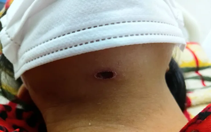 Qua thăm khám, các bác sĩ ghi nhận bệnh nhân sốt trên 39 độ C, mệt mỏi nhiều, môi khô, mắt trũng, lưỡi bẩn - dấu hiệu gợi ý mất nước và nhiễm trùng. Đáng chú ý, tại mặt ngoài đùi phải có một vết loét nhỏ kích thước khoảng 5x3 mm, viền đỏ, trung tâm đóng vảy tiết. Đây là dấu hiệu điển hình của sốt mò, bệnh truyền nhiễm cấp tính do vi khuẩn Orientia tsutsugamushi gây ra, lây truyền qua ấu trùng mò.
