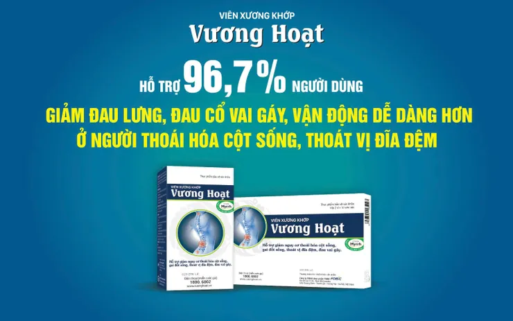 Vương Hoạt là giải pháp đột phá, mang lại hiệu quả lâu dài cho người bị đau lưng, đau cổ vai gáy, thoái hóa cột sống, thoát vị đĩa đệm; sản phẩm tiên phong chứa chiết xuất Myrrh từ Cây Một Dược và hoạt chất MSM