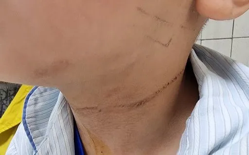 Hình ảnh vết dây thắt ở cổ bệnh nhi.