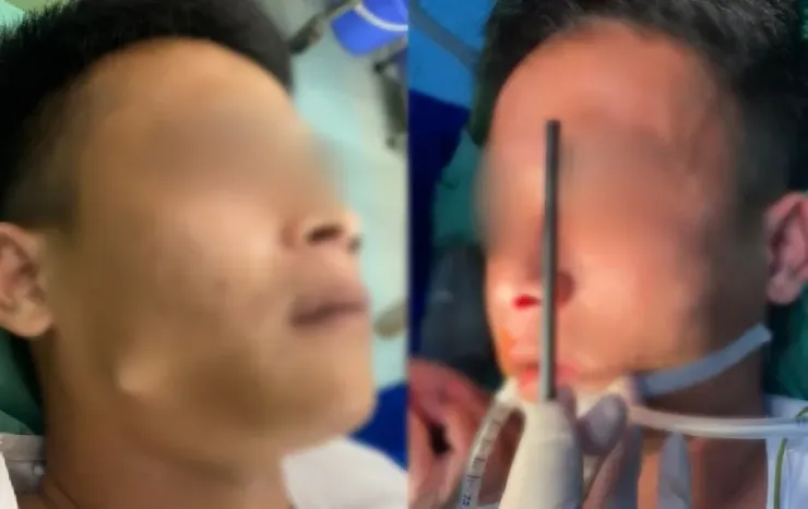 Tại đây, qua thăm khám và các kết quả xét nghiệm cận lâm sàng cho thấy, bệnh nhân có dị vật ở phần mềm vùng má phải, không thấy hình ảnh tổn thương ở khối xương sọ mặt và nhu mô não. Các bác sĩ đã chỉ định nhanh chóng hoàn tất thủ tục và khẩn trương đưa bệnh nhân lên phòng mổ cấp cứu.