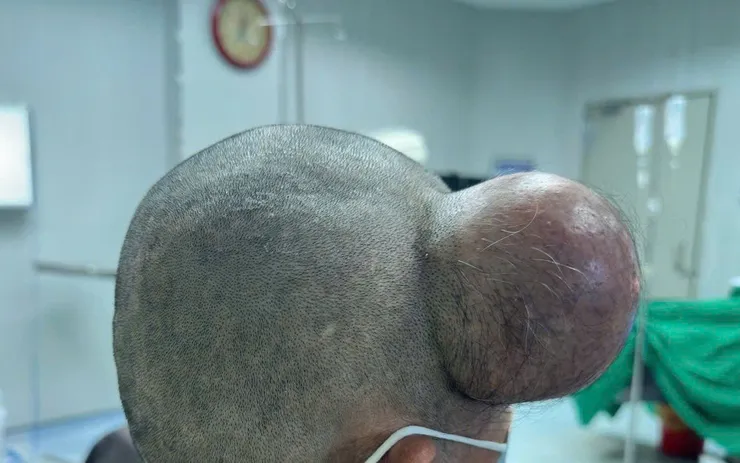 Khối u vùng đầu của bệnh nhân. Ảnh: BVCC