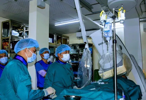 Các bác sĩ tiến hành thăm dò điện tim sinh lý và điều trị rối loạn nhịp tim cho bệnh nhân