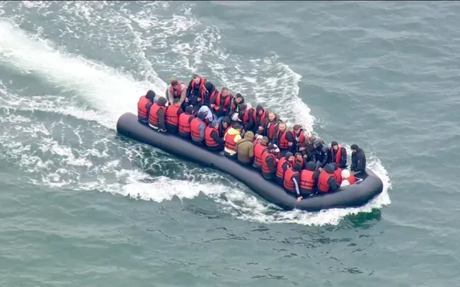 Nhiều người di cư bất chấp nguy hiểm đến tính mạng, lênh đênh trên con thuyền nhỏ để di cư đến Anh (Ảnh: Sky News)
