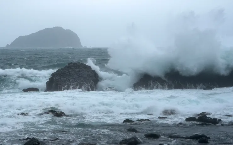 Dự báo bão Kong-rey sẽ tiếp tục gia tăng cường độ trước khi đổ vào đất liền ở huyện Đài Đông, Đài Loan (Trung Quốc).