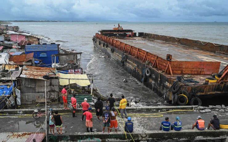 Sà lan bị thiệt hại do bão Yagi ở Rosario, tỉnh Cavite, Philippines, ngày 3/9 (Ảnh: AFP)
