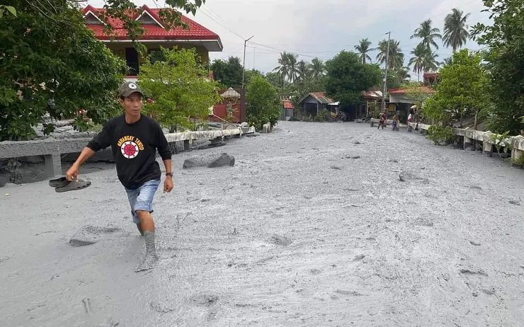 Hình ảnh được đăng trên Facebook và được AFP xác minh hôm 5/6 cho thấy một dòng lũ bùn núi lửa và đất đá màu xám - được gọi là dòng dung nham lạnh hay lahar - đang ầm ầm đổ xuống ngôi làng Biaknabato thuộc tỉnh Negros Occidental. Người dân được nhìn thấy đi chân trần lội qua lớp bùn dày bao phủ một con đường trong làng - nằm cách núi lửa vài km.