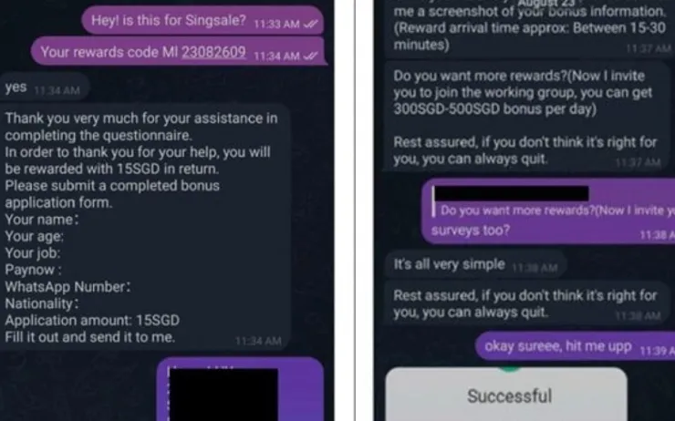 Những kẻ lừa đảo lôi kéo nạn nhân bằng cách trả hoa hồng cho họ khi hoàn thành các cuộc khảo sát đơn giản trước khi trao cho họ những cơ hội việc làm giả. Cảnh sát cho biết, các nạn nhân sẽ nhận được tin nhắn WhatsApp hoặc Telegram yêu cầu họ điền vào bản khảo sát hoặc bảng câu hỏi, hay quảng cáo các bài đăng trên Instagram bằng cách thích chúng.