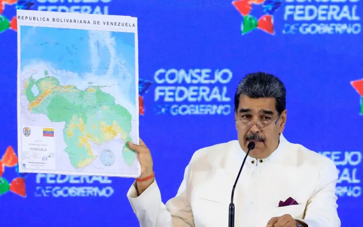 Tổng thống Venezuela Nicolas Maduro khẳng định chủ quyền của Venezuela đối với vùng Essequibo giàu dầu mỏ tại một hội nghị (Ảnh: AFP)