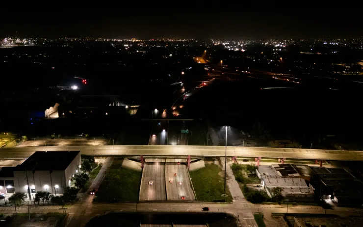 Các khu dân cư không có điện, đường cao tốc tối tăm do mất điện tại Houston, bang Texas, ngày 12/7 (Ảnh: AFP)