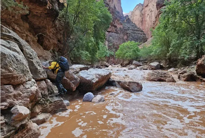 Những người tìm kiếm trên mặt đất di chuyển qua Havasu Creek sau trận lũ quét ở Công viên Quốc gia Grand Canyon (Ảnh: Cục Công viên Quốc gia Mỹ)