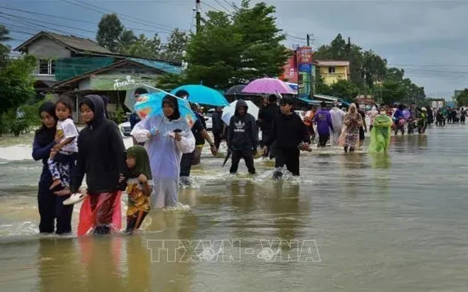 Cảnh ngập lụt sau những trận mưa lớn tại Narathiwat, Thái Lan (Ảnh: Getty Images/TTXVN)