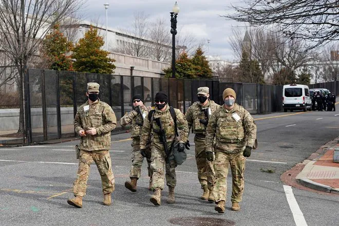 Lính vệ binh quốc gia tuần tra khu vực quanh tòa nhà Quốc hội Mỹ ở thủ đô Washington D.C. Ảnh: Reuters