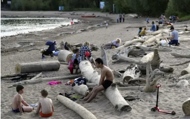 Người dân tránh nóng trên bờ cát của hồ chứa Novosibirsk trên sông Ob ở Novosibirsk, Siberia (Ảnh: TASS/Getty)