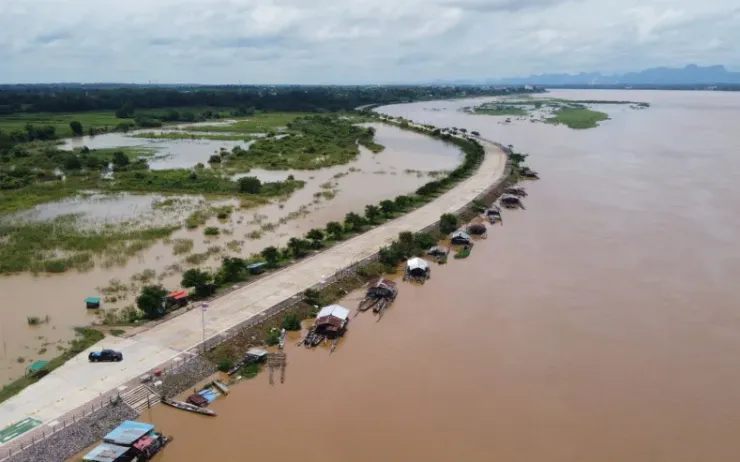 Tại huyện Chiang Khan của Loei, nước tràn từ sông Mekong đã gây ngập lụt một số cộng đồng ven sông hôm 13/9 và mực nước vẫn đang dâng cao.