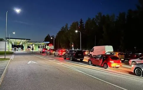 Ô tô xếp hàng vào Phần Lan từ Nga tại trạm kiểm soát Brusnichnoye, Nga (Ảnh: Sputnik)