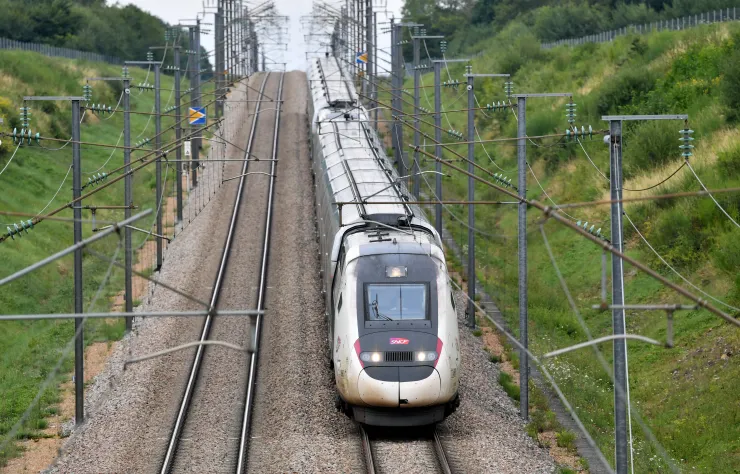 Một chuyến tàu cao tốc của Công ty đường sắt Pháp SNCF chạy trên tuyến Bordeaux-Paris tại Chartres, miền Bắc nước Pháp, ngày 26/7 (Ảnh: AFP)