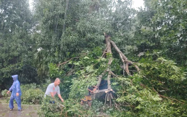 Dọn dẹp một con đường có cây đổ do gió mạnh từ cơn bão Yinxing ở tỉnh Cagayan, ngày 7/11 (Ảnh: AP)