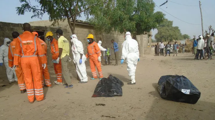 Lực lượng cứu hộ khẩn cấp thu thập các thi thể sau một vụ đánh bom liều chết ở ngoại ô Maiduguri, Nigeria. (Ảnh minh họa: AP)