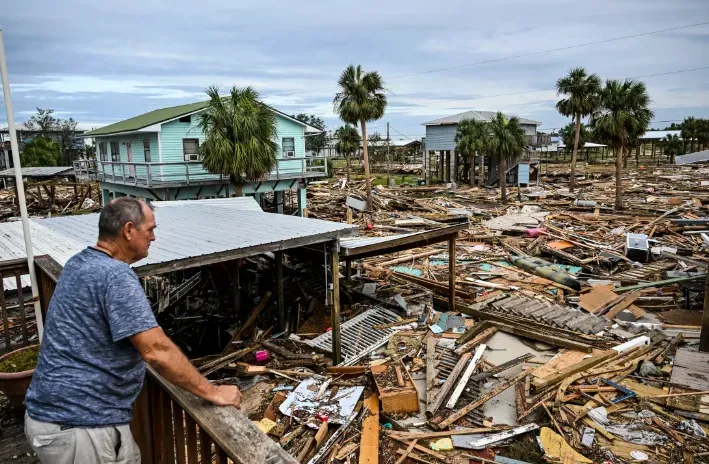 Thiệt hại nhà cửa vào ngày 28/9 sau khi bão Helene đổ bộ vào bãi biển Horseshoe, bang Florida (Ảnh: AFP/Getty Images)