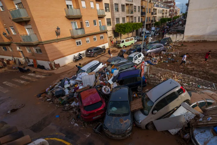 Tại Chiva, người dân bận rộn dọn dẹp đống đổ nát trên những con phố đầy bùn vào ngày 1/11. Thị trấn Valencia đã hứng chịu lượng mưa lớn trong 8 giờ vào ngày 29/10 nhiều hơn so với 20 tháng trước đó và nước tràn qua một khe núi chảy qua thị trấn, phá hủy đường sá và tường nhà.