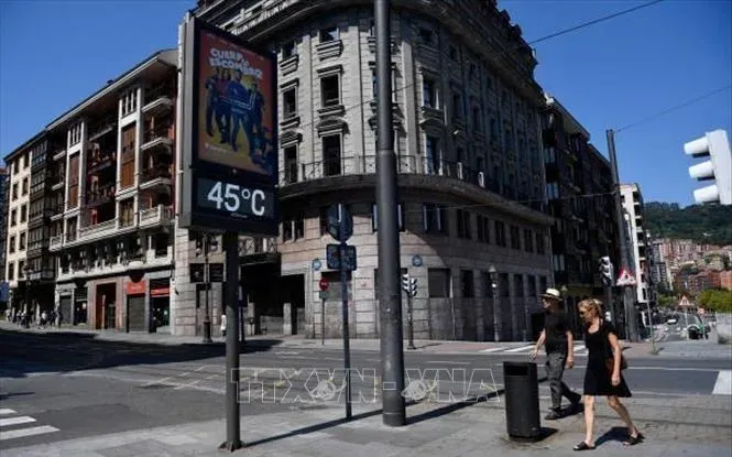 Nhiệt kế ngoài trời hiển thị mức nhiệt 45 độ C tại Bilbao, Tây Ban Nha, ngày 11/8/2024. (Ảnh: Getty Images/TTXVN)