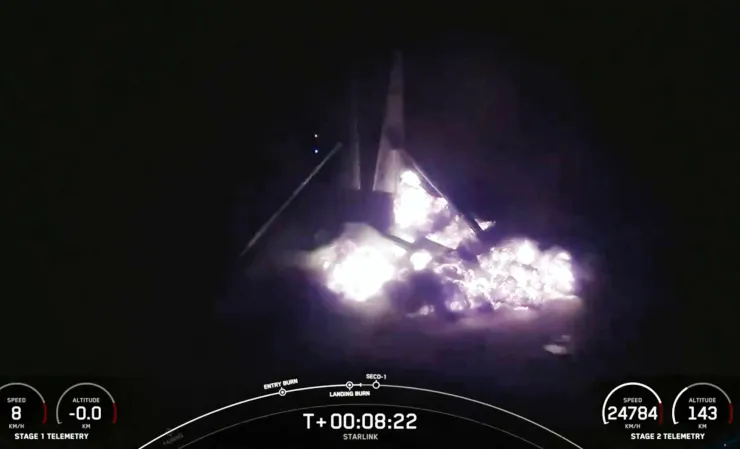 Tầng tên lửa này đã trở về Trái đất và tìm cách hạ cánh xuống một sà lan không người lái neo trên biển như thường lệ. Tuy nhiên, những hình ảnh phát trực tiếp cho thấy trong quá trình hạ cánh, tầng tên lửa này đã va chạm rất mạnh, bốc cháy dữ dội và văng xuống biển.