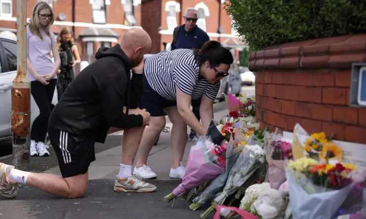 Người dân Anh đặt hoa tưởng niệm các nạn nhân trong vụ đâm dao ở lớp học khiêu vũ hôm 29/7 (Ảnh: AP)