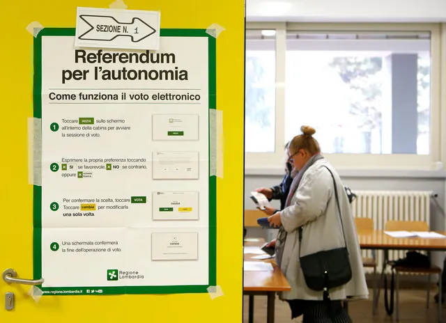Một điểm bỏ phiếu trưng cầu dân ý tại vùng Lombardy hôm 22/10 (Ảnh: Reuters)