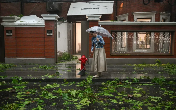 Thượng Hải ứng phó với bão nhiệt đới Pulasan, vài ngày sau khi Bebinca - cơn bão mạnh nhất đổ bộ vào thành phố này trong 75 năm qua. (Ảnh: AFP/Getty Images)