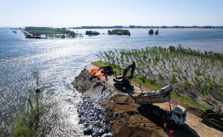 Bờ kè tại hồ Động Đình được coi là "tuyến phòng thủ thứ hai" nằm cách đê bị vỡ khoảng 2 km và dài 14,3 km. Theo ông Chen Wenping, thanh tra địa phương, đây là nhiệm vụ khó khăn vì bờ kè không vững chắc như đê và không được dùng để chặn nước từ năm 1996.