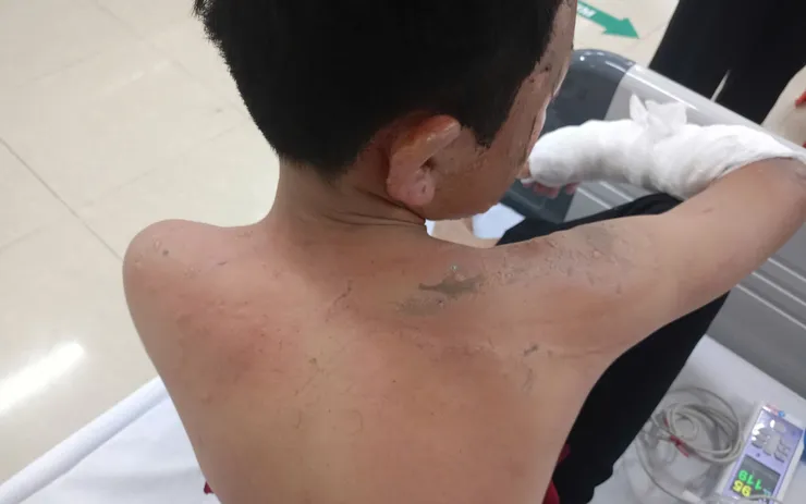 Gia đình cho biết trẻ tự đốt pháo và bị lửa pháo bùng lên gây bỏng nhiều vị trí. Bệnh nhi nhập viện trong tình trạng bỏng độ 1, 2, 3 với diện tích khoảng 25% vùng mặt, cổ, hai vai, bàn tay, cánh tay và bụng. Các bác sĩ đã tiến hành sơ cứu gồm giảm đau, truyền dịch, băng bỏng và chuyển bệnh nhi đến bệnh viện tuyến trên để điều trị chuyên sâu.