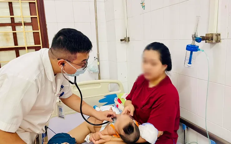 Bác sĩ thăm khám cho trẻ mắc RSV. Ảnh: BVCC
