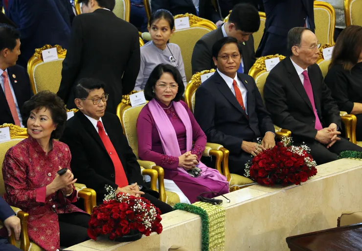 Phó Chủ tịch nước Đặng Thị Ngọc Thịnh (ngồi giữa) dự lễ nhậm chức Tổng thống Indonesia.