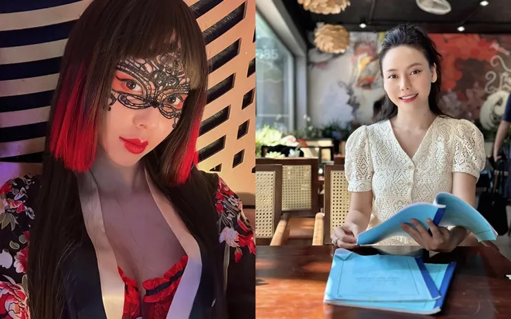 Bùi Hà trong vai geisha (ảnh trái) và hình ảnh ngoài đời thường (phải).
