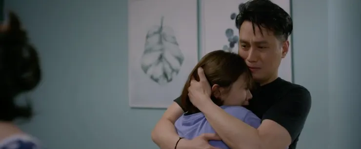 Nhìn thấy bố, Mai Anh oà khóc, nói con không muốn chết. Việt cũng khóc theo con.