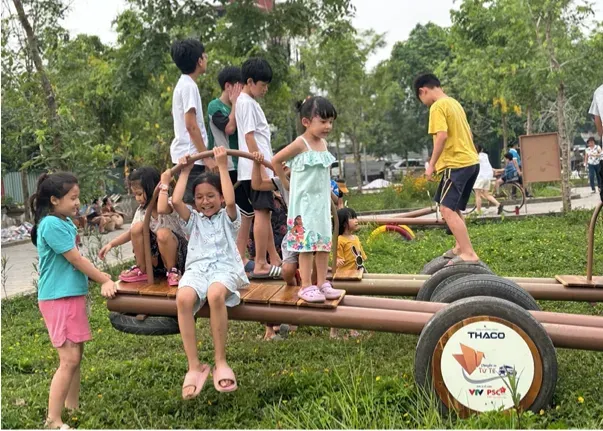 Chuyến xe tử tế với sự đồng hành của công ty Cổ phần tập đoàn Trường Hải Thaco và nhóm Think Playgrounds đã mang đến một sân chơi thú vị cho trẻ em ở huyện ngoại thành Hà Nội.