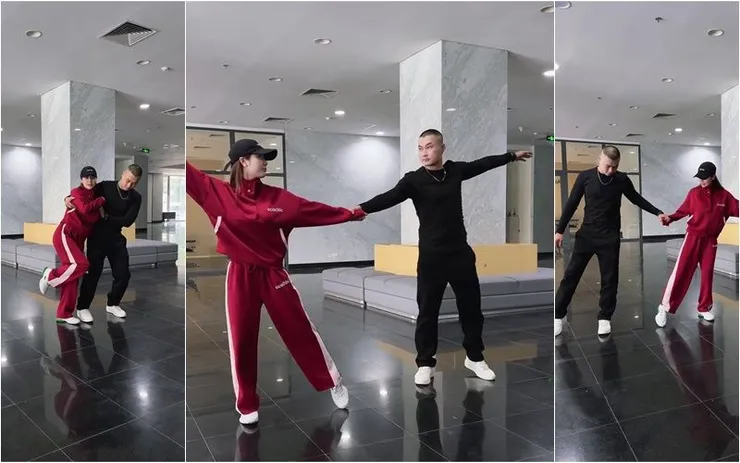 Huyền Lizzie - Duy Hưng tập nhảy đôi trong một tiết mục chung. (Clip: facebook diễn viên Huyền Lizzie)