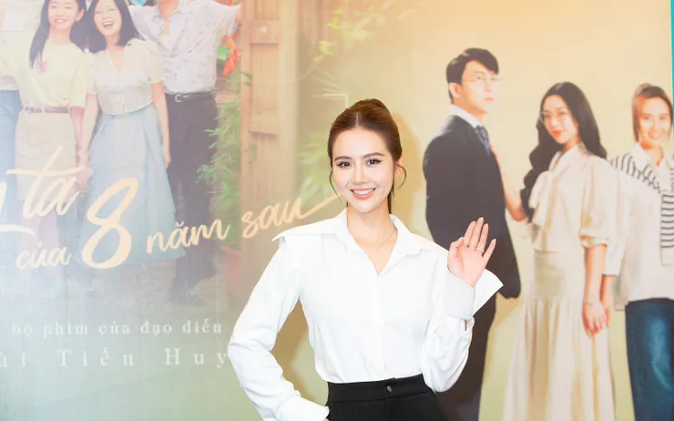 Huyền Lizzie trong buổi họp báo giới thiệu phim "Chúng ta của 8 năm sau"