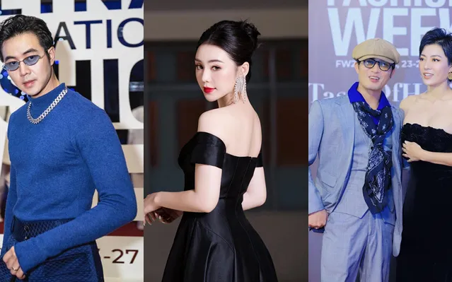 Vợ chồng nam diễn viên Phùng Đức Hiếu - MC Thùy Linh cũng là khách mời trong đêm diễn của NTK Đức Hùng. Nam diễn viên Phùng Đức Hiếu gây ấn tượng mạnh khi diện bộ đồ bó sát màu xanh nổi bật, khoe được thân hình chuẩn vạm vỡ. MC Thùy Linh vẫn giữ phong cách nhẹ nhàng, dịu dàng với chiếc váy màu trắng cắt xẻ khá táo bạo.